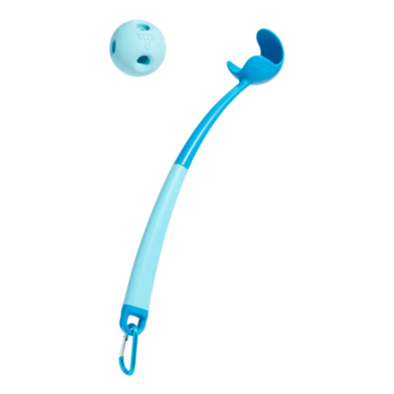 This cutting edge fetch toy will have you flinging like never before! The ergonomic launcher lets you throw farther, and bend over, less. It also has a soft, rubber grip that's easy on your hands. The natural rubber ball features airflow holes to help your
