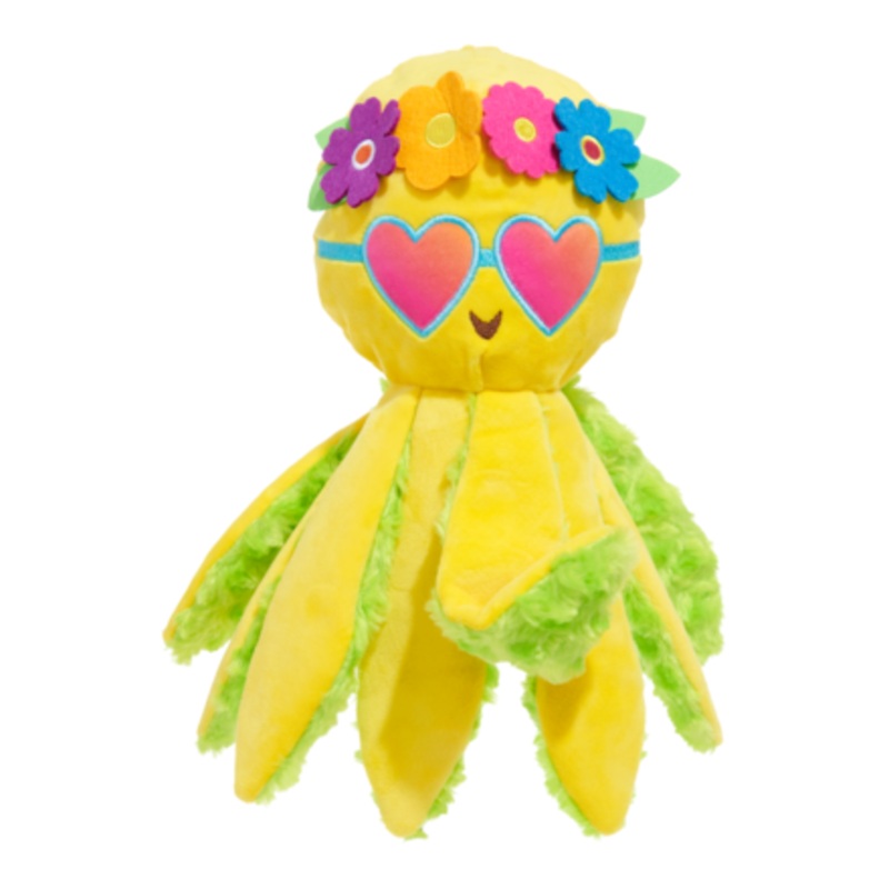 This squeakadelic cephalopod is ready to take your pup to Woofstock! Grab hold of Ollies 8 whip-n-flip limbs and show your dog how we used to fetch things in the Flinging Sixties. About July's toy: Ollie Need is Love! This squeakadelic cephalopod is ready